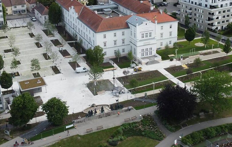 Ein erster lebender Beweis für diese Bemühungen steht den Tullner:innen seit kurzem zur Verfügung. Waren am Nibelungenplatz beim Rathaus bisher Autos abgestellt, laden jetzt auf einer – großteils entsiegelten und damit an den Klimawandel angepassten – Fläche von 8.000 m² Sträucher, Sitzgelegenheiten und schattenspendende Bäume zum Verweilen ein. Dem Projekt war ein umfassender Bürger:innenbeteiligungsprozess vorausgegangen, in einer Volksbefragung konnten die Tullner:innen 2021 aus drei unterschiedlichen Varianten wählen. Die Bewohner:innen entschieden sich für die größtmögliche Variante mit den wenigsten Parkplätzen und dem meisten Grün und haben nun einen wunderschönen Ort der Ruhe und Erholung inmitten ihrer Stadt.