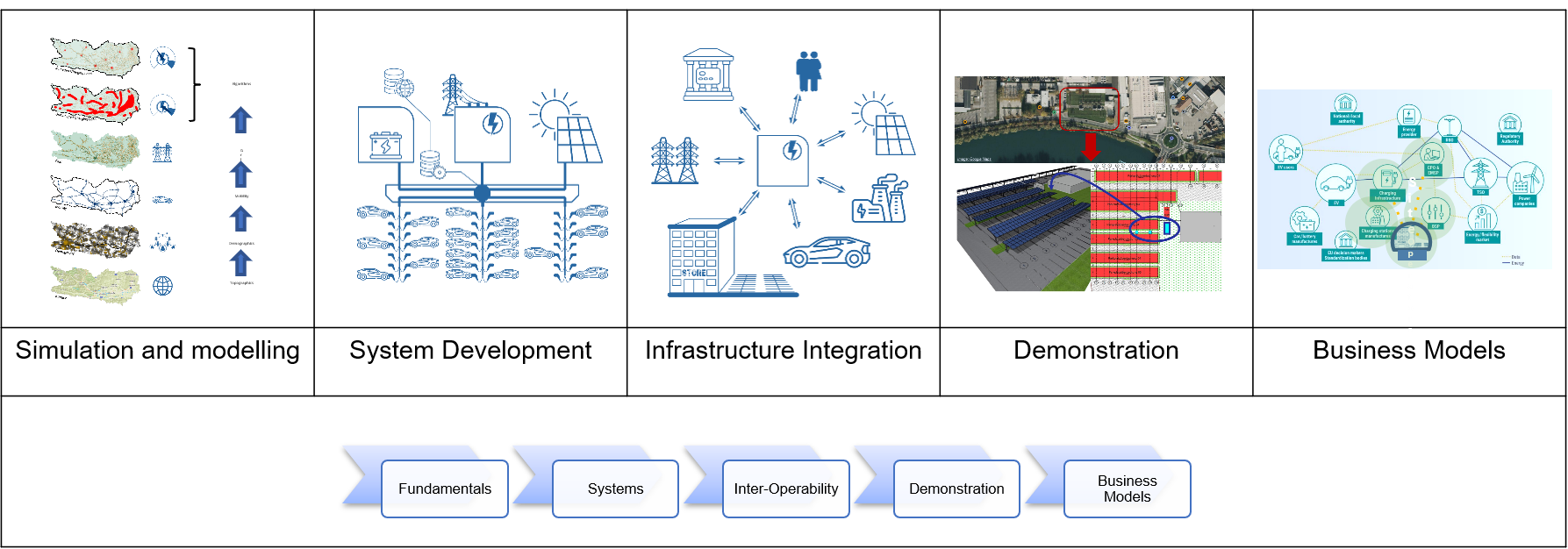 Im weiteren Verlauf werden hocheffiziente Mikronetze zur Energieverteilung entwickelt, prototypisch umgesetzt und demonstriert. Dazu werden funktionierende Modelle unserer integrierten Ladeinfrastruktur für Elektrofahrzeuge gebaut und getestet, die mit erneuerbaren Energien betrieben werden. Die Demonstrator-Prototypen werden an einem städtischen Arbeitsplatz installiert und unter realen Bedingungen auf Leistung und Nutzerakzeptanz evaluiert.